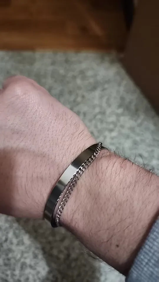 Say goodbye to dull and uninspired accessories. These men's stackable bracelets offer the perfect blend of modern sophistication and classic charm. Made with sterling silver and gold plating, the bracelets maintain their shine and do not tarnish easily. Ideal for any attire, whether you're dressing up for a special occasion or keeping it casual. This premium accessory stands out in its durability and style, elevating any look instantly.